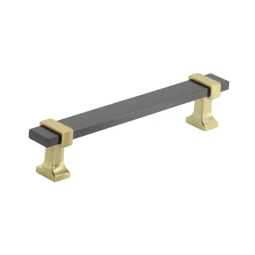 The Amerock BP36682BCRBGL Overton 5-1/16 inch (128mm) Center-to-Center Pull is finished in Black Chrome/Brushed Gold.