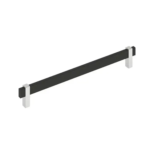 The Amerock BP36726MB26 Mulino 10-1/16 inch (256mm) Center-to-Center Pull is finished in Matte Black/Polished Chrome.