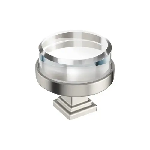 The Amerock BP36976CG10 Glacio 1-1/2 inch (38mm) Diameter Knob is finished in Clear/Satin Nickel.