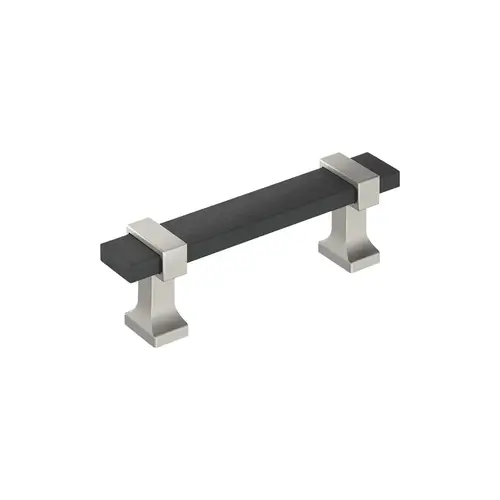 The Amerock BP37080BMBG10 Overton 3 inch (76mm) Center-to-Center Pull is finished in Brushed Matte Black/Satin Nickel.