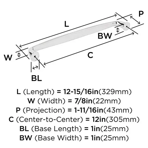 The Amerock BP5380526 Kane 12 inch (305mm) Center-to-Center Appliance Pull is finished in Polished Chrome.