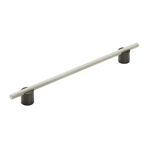 The Amerock BP7414256MBSC Transcendent 10-1/16 inch (256mm) Center-to-Center Pull is finished in Matte Black/Silver Champagne.
