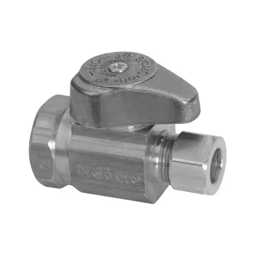 BrassCraft 1/2 in FIP inlet x 3/8 in OD compression outlet 1/4-turn straight valve controls water flow to household plumbing fixtures like faucets, toilets, dishwashers, icemakers, washing machines. The straight valve is most often used where the water pipe enters the room from the floor. With a 90 deg turn of the valve handle, you are able to stop the flow of water leading to the plumbing fixture, allowing for maintenance and repair without shutting off the water to the entire home.