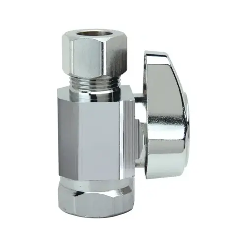 BrassCraft 3/8 in FIP inlet x 3/8 in OD compression outlet 1/4-turn straight valve controls water flow to household plumbing fixtures like faucets, toilets, dishwashers, icemakers, washing machines. The straight valve is most often used where the water pipe enters the room from the floor. With a 90 deg turn of the valve handle, you are able to stop the flow of water leading to the plumbing fixture, allowing for maintenance and repair without shutting off the water to the entire home.