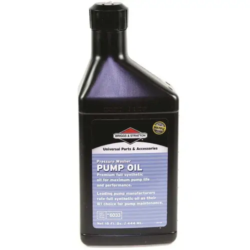If your pressure washer requires oil for the pump, Briggs & Stratton High Endurance pump oil will keep your pump properly lubricated to ensure long life and maximum performance. Be sure to occasionally check the oil level and add as needed. Refer to the owners manual for proper oil fill levels. Be sure not to overfill the pump as this could cause the seals to fail due to excessive pressure.