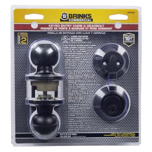 Brinks Commercial BC40106 Knob and Deadbolt Set Matte Black 2" Matte Black