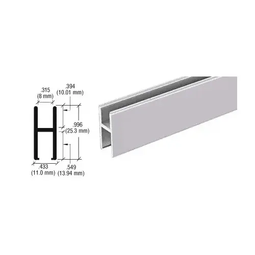 CRL D610 Aluminum 'H' Bar is one of our most popular track extrusions. Designed for use with 3/16", 7/32", and 1/4" (5, 5.5, and 6 mm) materials with optional Glazing Vinyls and uses D650 Nylon or D649 Steel Wheels. GC728, DV765 and SDV732 vinyls are designed to accommodate 3/16" (4 mm) - 1/4" (6 mm) glass providing a tight fit in this 'H' Bar. GC728 Vinyl has an extruded lip which, when seated, leaves a visible neat "bead". The DV765 sits below the face of the 'H' bar leaving an unobstructed view of the glass.