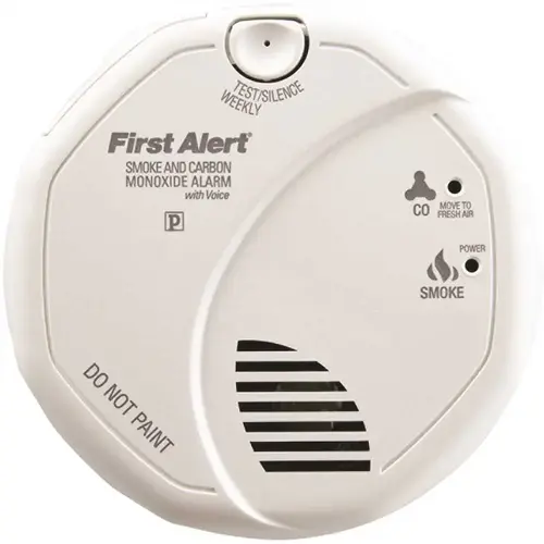 BRK hardwired combination photoelectric smoke and carbon monoxide alarm with battery backup. This alarm provides voice alarm with location. Alarm carries a 10-year limited warranty.