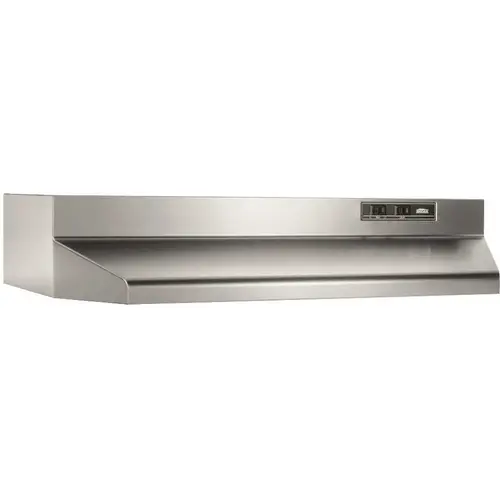 The Broan 40000 series is made for a wide range of installations and comes in a variety of appliance matching colors. The durable under cabinet hood installs as 3-1/4 in. x 10 in. ducted opening only and ducts either vertically or horizontally. The hood is equipped with a 210 MAX Blower CFM designed for years of trouble free service, an easy to clean grease filter, a protective lamp lens that distributes light evenly over the cook-top, and control switches for fan speed and light activation. Includes duct adapter with built-in damper.