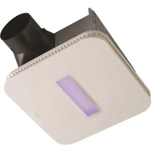 SurfaceShield technology combined with Broan's powerful ventilation offers effective protection against bacteria, mold and fungi growth in your bathroom or other humidity prone environments. Offering super-quiet sound rating of 1.0 sone, the Broan SurfaceShield 110 CFM Exhaust Bath Fan generates powerful air circulation with minimal background noise. There are two lighting modes in the SurfaceShield LED light, an everyday white light perfect for task lighting and the SurfaceShield continuous antimicrobial mode. Broan Room side Series fans offer an EzDuct connector for hassle-free room-side installation with no attic access needed. With the addition of the EzDuct connector, other new additions have been added including foldable mounting ears, a new damper and housing technology that improves airtightness like never before. This bath fan includes soft white LED lighting for energy savings and a grille that compliments any decor. Note: Due to certain State regulations this product is not available in Indiana, Hawaii.