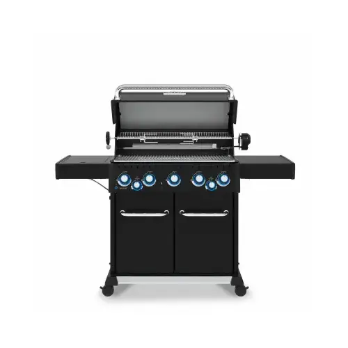 The Baron 590 Pro Shadow delivers power, versatility, and style for unforgettable backyard cookouts. With 780 sq. in. of total cooking space, including 570 sq. in. primary area and a stainless-steel warming rack, it is built to handle a crowd. Five stainless steel patented Dual-Tube burners deliver up to 45,000 BTU for even heat and precise control. The full coverage stainless steel Flav-R-Wave vaporizes drippings to maximize flavour, and reduce flare-ups. A 10,000 BTU side burner handles sides and sauces, while a 15,000 BTU rear rotisserie burner and kit enhances your grilling options. The stainless steel cooking grids provide superior heat retention, and the rust resistant cast aluminum cookbox offers lasting durability. The Shadow's sleek black styling is complemented by blue LED control knob lights for nighttime use. Includes a Limited Lifetime cookbox warranty and 15-year warranty on parts and paint, ensuring years of reliable performance.
