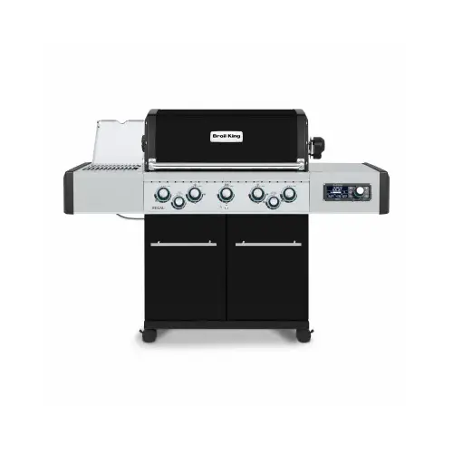 The Broil King Regal Q 590 Pro IR with iQue technology takes the guesswork out of grilling. Master smoking, roasting, rotisserie, and grilling with ease. The Regal Q 590 features 995 sq. in. of total cooking space (625 sq. in. primary grilling area). Powered by five Dual-Tube burners producing 55,000 BTU, the Regal Q 590 Pro IR ensures exceptionally even heat. The full coverage stainless steel Flav-R-Wave system vaporizes food juices that create rich barbecue flavour. The 10,000 BTU infrared side burner sears at 1700 degreeF, and the 15,000 BTU rear burner and premium rotisserie kit expand grilling options. The solid stainless steel cooking grids provide superior heat retention and searing power. The category leading premium and performance features combine style, functionality, and durability. Backed by a Limited Lifetime warranty on the cookbox and a 15-year warranty on remaining parts and paint (3 years on iQue components), this grill is built to impress and built to last.