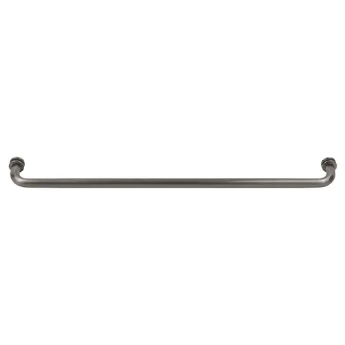 The BM Series of Single-Sided Towel Bars With Metal Washers are designed for glass mounting on fixed panels or doors. The 3/16" low profile end caps make this an ideal bar for sliding bypass doors as well. The bars are constructed of 1.5 mil thick heavy brass tubing. Decorative metal back-up washers are included, as well as plastic washers to protect against glass-to-metal contact.