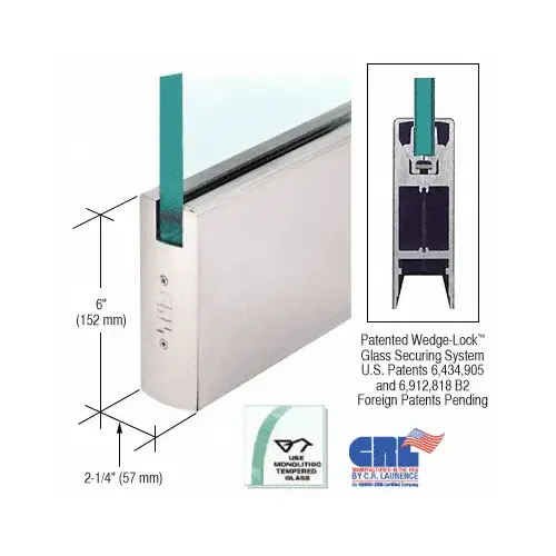 Other reasons to choose CRL Wedge-Lock Door Rail System: Models are available to accept 3/8" or 1/2" (10 or 12 mm) glass; a rigid single component housing that will not shift and fall out of adjustment over time because it is not made up of two halves; the internal components do not require removal before installation; the glass securing pads are designed for longevity in extreme environments.