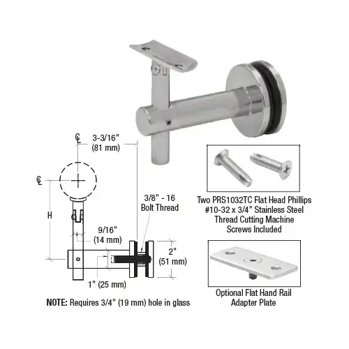 CRL Sunset Series Glass Mounted Hand Rail Bracket is made of 316 Grade Stainless Steel and includes Two Flat Head Allen M6 x 1.0 x 5/8" Stainless Steel Machine Screws.