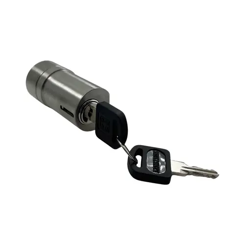 Easy-to-install, these CRL UV Tube Locks is extremely versatile due to the side mounted design. The tube is flat on one long side for bonding. Can be installed on glass doors up to a maximum thickness of 1/2" (12 mm). All three key tubes measure 1-3/32" (28 mm) in diameter and 1-13/16" (46 mm) in length. The 5/8" (15.9 mm) thick x 1-3/32" (28 mm) diameter receiver plate bonds to the inline panel, aligning with the key tube.
