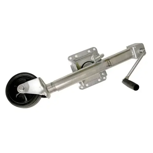 Take the work out of hitching up the trailer holding your boat or ATV with the Sportsman Series 1000 pounds Trailer Jack. This adjustable height trailer jack can accommodate trailer tongues up to 26 inches from the ground. Bolt the half ton capacity Trailer Jack onto your trailer with hardware that is included in the package so it is always available when you need it. When not in use, the jack swings up and out of the way. The 360 degree swivel wheel makes moving the trailer over the hitch simple. Positioning the trailer and Jack over the hitch on your truck is easy. Just roll the trailer into position over the hitch. Crank the handle counter clock-wise to lower onto the ball mount. After the weight of the trailer has been applied to the hitch, and the hitch is locked, unlock the Trailer Jack and swing it up and out of the way.
