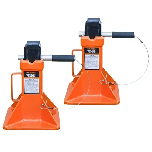 Experience unmatched stability and reliability with the Black Bull 22 Ton High Height Jack Stand - a formidable 2-piece set designed to elevate your automotive maintenance to new heights. Crafted for professionals and enthusiasts alike, these jack stands offer exceptional strength, stability, and adaptability. The wide base and sturdy construction provide a solid foundation for your vehicle, while the adjustable height range and secure locking system offer versatility and peace of mind during maintenance tasks. Whether you're working on routine maintenance, tire changes, or more complex repairs, the Black Bull 22 Ton High Height Jack Stand set is the reliable choice, promising durability, safety, and precision engineering in every use. Elevate your automotive maintenance experience with this top-tier set of jack stands made for the demands of heavy-duty tasks. This jack stand boasts a durable frame capable of withstanding substantial loads, providing unparalleled support for your car, truck, or SUV. Compact and easily portable, this jack stand is the ideal addition to your garage or automotive toolkit.