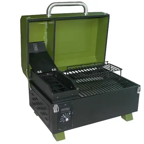 • To use the Buffalo Outdoor Portable Electric Start Wood Pellet Grill Smoker, fill the hopper full of wood pellets, plug in the Grill, and set the temperature