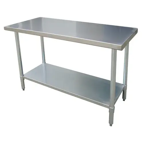 The Sportsman Series Stainless Steel Work Center is the perfect addition to your kitchen, garage, or basement. A smooth 24 inch x 48 inch work surface is ideal for preparing and processing sauces, meats and vegetable, and is large enough to complete most arts and crafts projects .The 35 inch height is ideal for cooking and working without making your back ache. Adjustable galvanized metal shelf fits under the table and provides additional storage space for supplies.