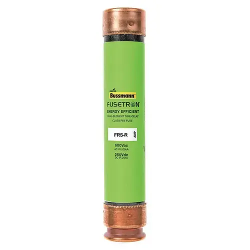 These cartridge fuses are 23% more energy-efficient and offer the ideal time delay performance. Their dual-element feature allows closer sizing to load for excellent protection of motors and transformers. These class RK5 fuses with a 200 kA interrupting rating can be used in a broad range of applications. When sized correctly, they help protect motors from burnout caused by overloads or single phasing. The time delay feature allows the initial startup current surge for typical motors to pass, but opens prior to motor burnout when longer, dangerous overloads are present. In addition, the dual-element design opens in as little as 0.004 secs if the fuse experiences short circuit conditions. All fuses are UL listed Class R (IR: 200 kA).