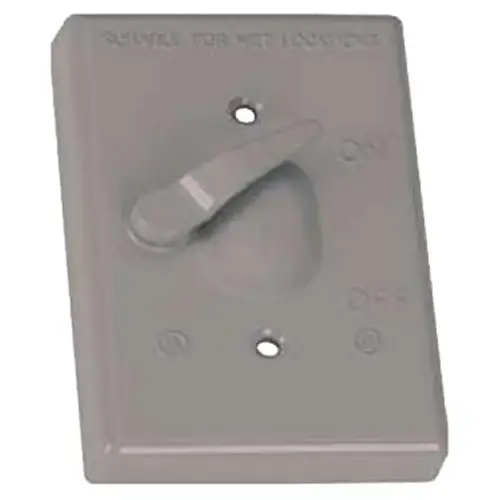 BWF Toggle Switch Cover, Metal, Powder-Coated, Gray, 4-9/16 in Length, 2-13/16 in Width, Suitable for: 15 A Single Pole Switch, Includes: Gasket and Screws