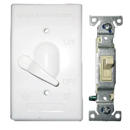 BWF Toggle Switch Cover, Metal, Powder-Coated, White, 4-9/16 in Length, 2-13/16 in Width, Suitable for: 15 A Single Pole Switch, Includes: Gasket and Screws