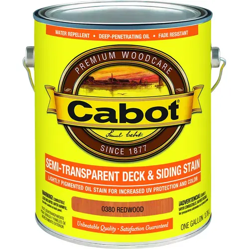 Cabot semi-transparent stains are deep-penetrating, linseed oil-based stains that beautify and protect exterior wood. These lightly pigmented stains enhance the natural beauty of the wood by allowing the grain, texture and color variations within the wood to show through. Will provide long-lasting, vapor permeable protection that beautifies and enriches exterior wood surfaces. Formulated with non-fade, earth tone pigments to weather slowly over time.