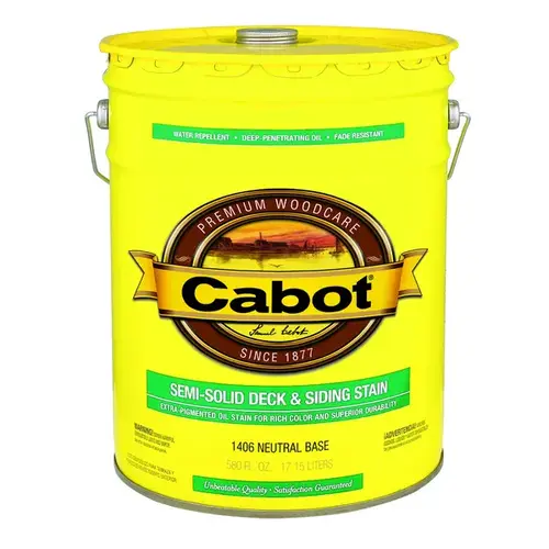 Cabot semi-solid deck and siding stains are deep-penetrating linseed oil-based stains that provide long-lasting beauty and wood protection, highlight the natural beauty of the wood's texture with a uniquely pigmented appearance. With their extra pigmentation, Cabot deck and siding stains are extremely durable and help protect wood against the sun's damaging UV rays.