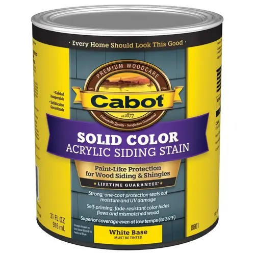 Cabot solid color acrylic siding stain is an advanced technology, 100% acrylic solid color stain formulated to have great performance properties for the professional user. Solid color acrylic siding stain is a heavily pigmented and exceptionally thick wood siding stain, delivering greater opacity than conventional solid color stains. The result is smoother spread, better coverage and superb handling when applied by either brush or sprayer. In addition, this product has been developed and tested for use in colder temperatures, extending the exterior maintenance season for professionals in cooler climates. Cabot solid color acrylic siding stain covers previously painted or stained surfaces in just one-coat, improving project completion time and maximizing labor efficiencies. Cabot solid color acrylic siding stain is so advanced, it does not require the use of a primer coat on non-extractive-prone wood species such as pine, white cedar or cypress.