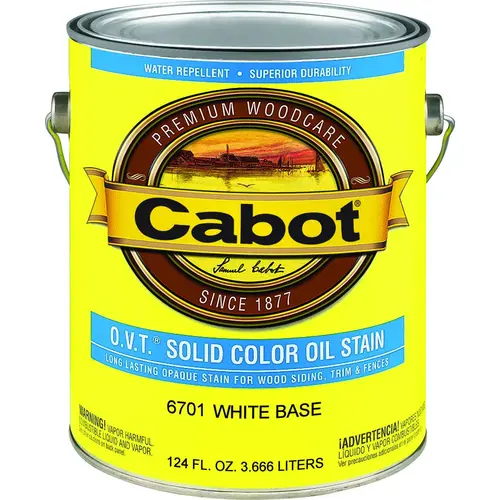 Cabot O.V.T. solid color oil stains combine the best features of stain and paint. These stains contain a blend of tough alkyd resin and linseed oil and offer tremendous hiding power yet resist cracking, peeling and blistering. They provide a water-repellent and durable finish that helps to keep moisture out, thus minimizing wood warping and checking. These stains provide long-lasting protection to new wood or previously stained surfaces.