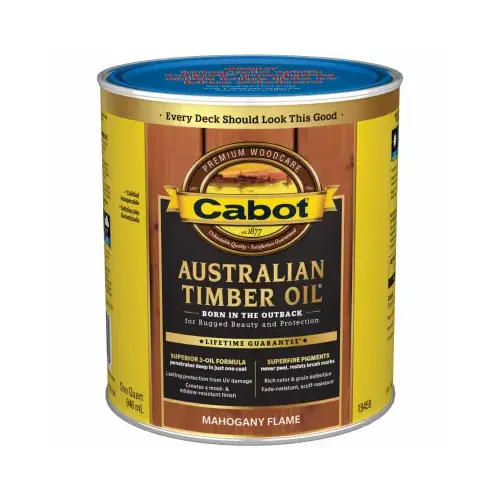 Cabot Australian Timber Oil for decks, siding, railings and outdoor furniture is a unique blend of oils originally formulated to protect dense tallow wood, cambara and merbau from the extreme Australian exposures. Australian Timber Oil penetrates deep into the dense, resin-rich woods to accentuate natural wood depth and patina. Containing a precise blend of superb-grade linseed oil for maximum penetration, long oil alkyds for durability and pure South American tung oil for color depth and water repellency, Australian Timber Oil delivers three-way oil protection and a beautiful hardwood stain. In addition, complex translucent iron oxide pigments are added to ensure a lasting UV-absorbing surface rich with color and dimension.