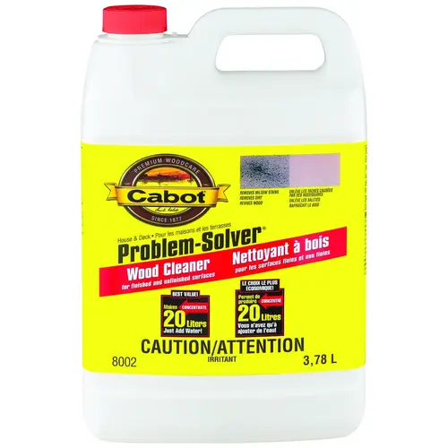 Cabot Ready-to-Use Problem Solver wood cleaner is specially formulated to remove mildew stains, mold stains, algae stains, dirt and other foreign matter from all painted, stained, unfinished or weathered wood surfaces. Use for routine cleaning and for properly preparing all surfaces prior to staining or painting.