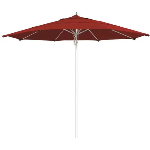Clear summer days draw everyone out to enjoy the fresh air and temperate warmth, and you want to ensure your outdoor space has the best lounging and shaded areas around to entice more guests to visit your patio haven. With the 11 ft. Commercial Grade Aluminum Double Pulley Market Patio Umbrella as your centerpiece, your outdoor space will immediately become the focal point of the afternoon. The durable double pulley-lift allows for easy opening and closing of the umbrella whenever the sun's harmful rays brighten your space. Beneath the spacious solution-dyed Sunbrella canopy's long-lasting shade barrier, you can relax and take shelter from the burning sunlight without concern over fading or rot due to the 5-year manufacturer warranty. A sleek aluminum center pole stabilizes the umbrella, its heavy-duty, thick walls providing extra durability to increase the longevity of your patio shade fixture. Each rib on this umbrella is also constructed of premium fiberglass that conveniently bends and flexes in the wind, improving the wind resistance on days when the breeze becomes more violent. A picturesque sunny day is bright and cheerful, and this commercial-grade patio centerpiece is the perfect accessory to make your enjoyment of comfortable and safe, so add this umbrella to your patio to make it a stylish oasis that you and your guests will gravitate to.