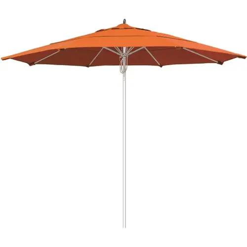 Clear summer days draw everyone out to enjoy the fresh air and temperate warmth, and you want to ensure your outdoor space has the best lounging and shaded areas around to entice more guests to visit your patio haven. With the 11 ft. Commercial Grade Aluminum Double Pulley Market Patio Umbrella as your centerpiece, your outdoor space will immediately become the focal point of the afternoon. The durable double pulley-lift allows for easy opening and closing of the umbrella whenever the sun's harmful rays brighten your space. Beneath the spacious solution-dyed Sunbrella canopy's long-lasting shade barrier, you can relax and take shelter from the burning sunlight without concern over fading or rot due to the 5-year manufacturer warranty. A sleek aluminum center pole stabilizes the umbrella, its heavy-duty, thick walls providing extra durability to increase the longevity of your patio shade fixture. Each rib on this umbrella is also constructed of premium fiberglass that conveniently bends and flexes in the wind, improving the wind resistance on days when the breeze becomes more violent. A picturesque sunny day is bright and cheerful, and this commercial-grade patio centerpiece is the perfect accessory to make your enjoyment of comfortable and safe, so add this umbrella to your patio to make it a stylish oasis that you and your guests will gravitate to.