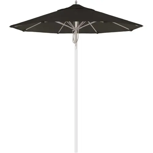 Clear summer days draw everyone out to enjoy the fresh air and temperate warmth, and you want to ensure your outdoor space has the best lounging and shaded areas around to entice more guests to visit your patio haven. With the 7.5 ft. Commercial Grade Aluminum Double Pulley Market Patio Umbrella as your centerpiece, your outdoor space will immediately become the focal point of the afternoon. The durable double pulley-lift allows for easy opening and closing of the umbrella whenever the sun's harmful rays brighten your space. Beneath the spacious solution-dyed Sunbrella canopy's long-lasting shade barrier, you can relax and take shelter from the burning sunlight without concern over fading or rot due to the 5-year manufacturer warranty. A sleek aluminum center pole stabilizes the umbrella, its heavy-duty, thick walls providing extra durability to increase the longevity of your patio shade fixture. Each rib on this umbrella is also constructed of premium fiberglass that conveniently bends and flexes in the wind, improving the wind resistance on days when the breeze becomes more violent. A picturesque sunny day is bright and cheerful, and this commercial-grade patio centerpiece is the perfect accessory to make your enjoyment of comfortable and safe, so add this umbrella to your patio to make it a stylish oasis that you and your guests will gravitate to.