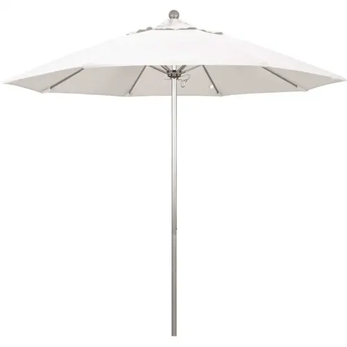 This Heavy-duty 9 ft. commercial grade umbrella by California Umbrella offers all the features a residential or commercial owner demands, with a robust commercial grade aluminum frame. The 2 section aluminum pole with a 0.08 in. wall thickness and fiberglass rib framework has superior stability and is perfect for demanding commercial conditions. The strong aluminum pole frame is matched by a simple efficient push lift system that complements a resilient easy to use umbrella. 1 of the key benefits to this umbrella is a 3-year warranty on the fiberglass ribs as a opposed to your standard 1-year warranty. This umbrella also features Sunbrella fabrics, which are built on a foundation of solution-dyed acrylic yarn, the most resilient and solid material for prolonged sun exposure, to offer even longer color retention rating than competing material sources. This umbrella will hold up against anything you throw at it, it has the benefits of both worlds.