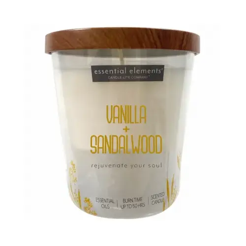 Candle Lite 4573344 Essential Elements Jar Candle, Vanilla & Sandalwood, 9-oz.
