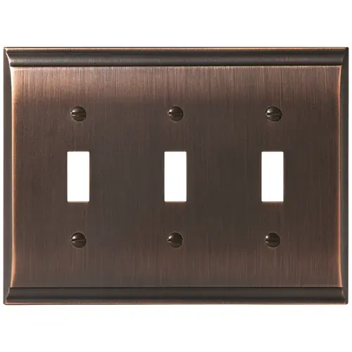 The Amerock BP36502ORB Candler 3 Toggle Wall Plate is finished in Oil Rubbed Bronze.