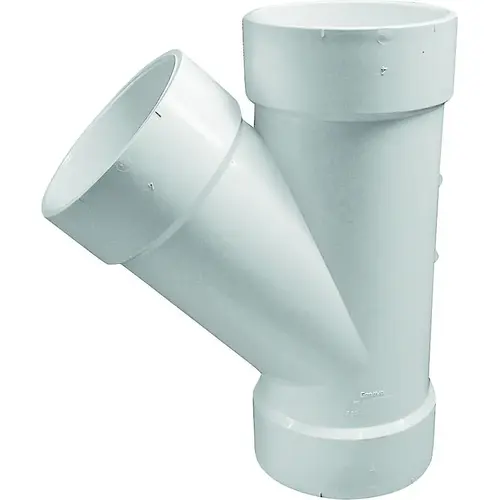 CANPLAS Pipe Wye, Nominal Size: 4 in, Hub Connection, Schedule Rating: SCH 40, PVC, White