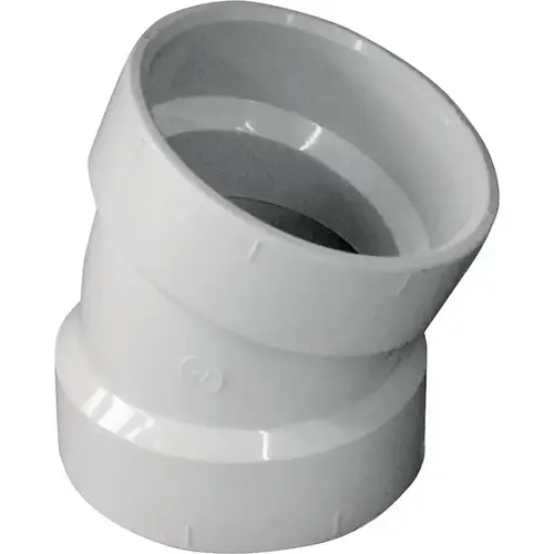 CANPLAS Pipe Elbow, Nominal Size: 2 in, Hub Connection, Angle: 22.5 deg, PVC, White