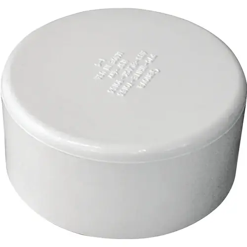 CANPLAS Pipe Cap, Nominal Size: 3 in, Hub Connection, PVC, White