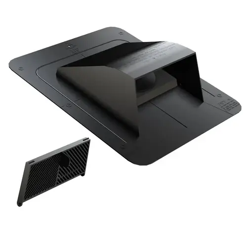 Explore our roof dryer and bathroom exhaust vent with flapper and attached collar options for your bath, dryer or range hood vent needs. Start your search below with our easy-to-use drop down. Installed on a sloped, shingled roof to exhaust bathroom fans or clothes dryers by the means of a roof opening. Includes internal damper to reduce backdraft and an exterior grill to prevent the infiltration and nesting of birds, vermin and insects.