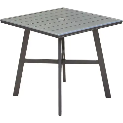 Cape Soleil Commercial Aluminum 30" Square Slat Top Table . 30" Square Aluminum Slat-Top Bistro Table Prevents Excess Water Build-Up On Tabletop . Commercial-Grade Patio Furniture Is Perfect For Furnishing Hotel Landscapes, Restaurant Patios, And Residential Use . Designed With All-Weather, Maintenance-Free Materials That Are Built-To-Last Years Of Regular Use Outdoors . Rustproof Aluminum Frame Is Treated With A Multi-Step, Gunmetal Finish For Maximum Outdoor Protection . Table Is Compatible With Most Patio Umbrellas And Features A 2-Inch Hole In The Center Of The Tabletop . Weight Capacity: 250 Lbs . Quality Checked, Tested And Approved . 10-Year Warranty On Frames For Durability You Can Count On . Returnable Up To 30 Days If Unopened . Mfg #CAPEDNTBLSL30-1GM