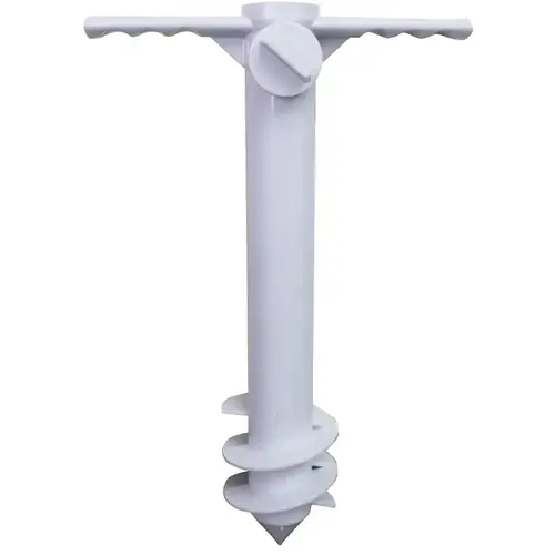 Caribbean Joe deluxe beach sand anchor is constructed of ABS plastic and features an easy-screw clamp design, oversized auger tip and two grip handles.