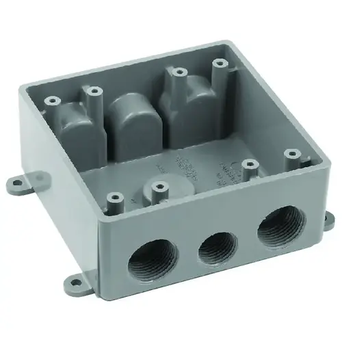 For use with non-metallic wiring systems. Non-conductive, noncorrosive and impact-resistant for a safe, long, service-free life in exposed applications. Install in accordance with NEC and local codes. Three 1/2 in plus four 3/4 in threaded ports. UL listed.