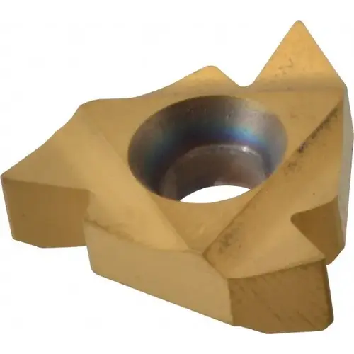 Laydown Threading Insert: 22 IR N60 BXC, Solid Carbide TiN Finish, Right Hand Internal Partial Profile 60 degree Thread, 7-5 TPI, 1/2" Inscribed Circle, 0.187" Thick