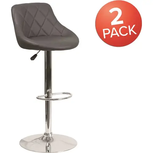 Classic style with a little zing perfectly describes this upholstered adjustable height barstool. A bucket seat design will make this a great accent chair around the bar area or kitchen and the easy to clean upholstery is an added bonus. The height adjustable swivel seat adjusts from counter to bar height with the handle located below the seat while the footrest supports your feet while also providing a contemporary chic design. To help protect your floors, the base features an embedded plastic ring.