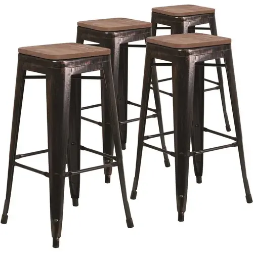 Save on space with this Backless Metal Bar Stool with wood seat. The clean lines and simple design of this square, industrial style stool will look great in your kitchen or inside your bar/restaurant. Designed to stack, this stool is an ideal choice in the restaurant industry. A cross brace underneath the seat adds extra stability and features plastic caps that prevent the finish from scratching when stacked. The lower support brace doubles as a footrest, and floor glides protect your floor by sliding smoothly when moving it. Designed for both commercial and residential use, this bar height stool will provide refreshing rustic feel with its metal and wood features.