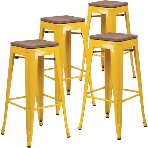• Set of 4 Industrial Backless Bar Height Stools for Commercial or Residential Use